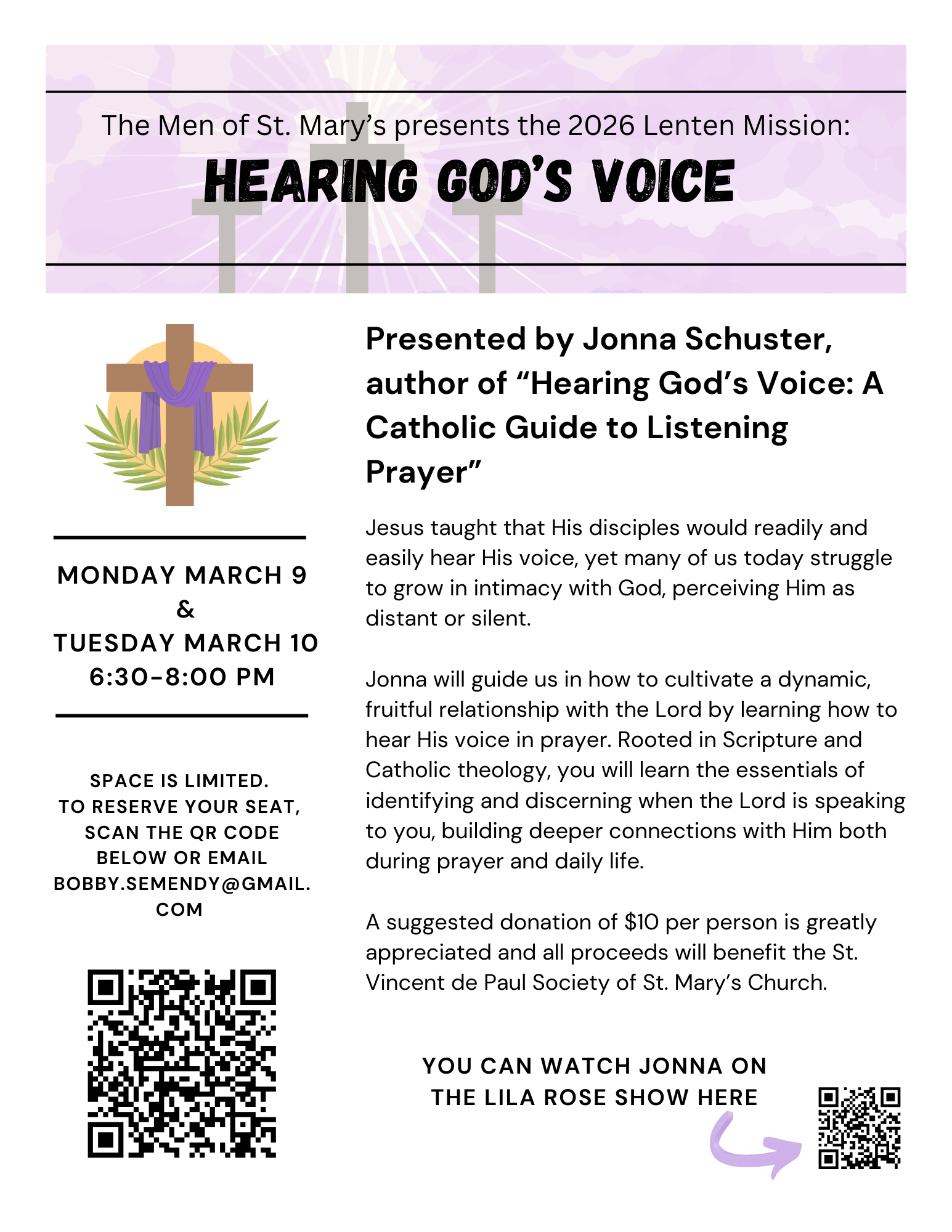 Experience the profound aspects of the Catholic Faith by joining us at any of our Sunday Masses. Discover all that our faith has to offer.